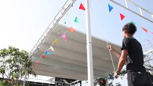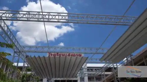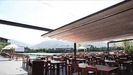 หลังคาผ้าใบเปิดปิดได้ ติดตั้งที่ คีรีมายา กอล์ฟ รีสอร์ท แอนด์ สปา เป็นขนาดมาตรฐาน ควบคุมด้วยรีโมทคอนโทรล